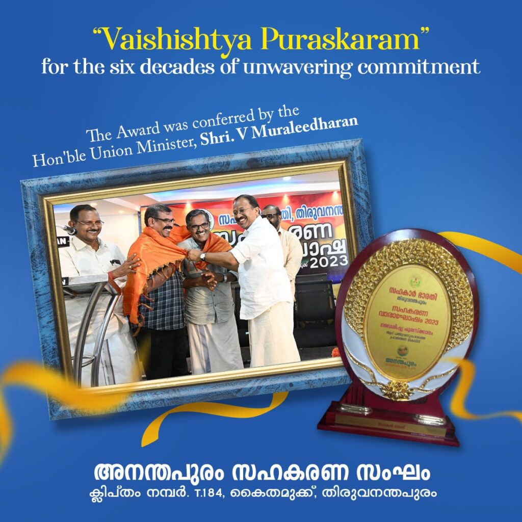 Ananthapuram Cooperative Society was awarded the “Vaishishtya Puraskaram”